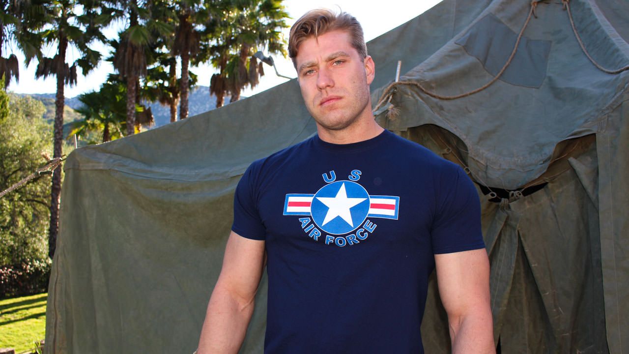 John Hawkins sits down on the edge of the bed playing with his cock and then casually walks off screen and returns fully naked with his hung hard cock out ready to stroke. He sits back down on the bed and makes himself comfortable and continues to feel his body and stroke every inch of his long hard dick. You can see how wide John's shoulders are and you realize all the time and effort he has put in at the gym. John stands tall as Claude shoots and underneath shot showing us his full balls and thick shaft. He slides his lubed up hand slowly up and down his throbbing cock and you can hear the sounds as he grips his cock and jacks off. He spreads his legs wide showing us his hairy ass as he continues to stroke his dick and with two hands. The speed has picked up and both hands are sliding up and down his hard shaft. John knows his balls are ready to explode and with a few more strokes of his hard cock he shoots his warm load all over himself.