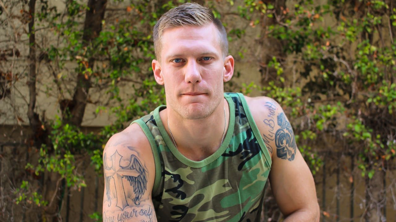 Once Claude lets him get down to it, Tex pulls off his tank top and we see his lightly tattooed, heavily toned upper body. Yowza! Tex has the type of body I can't resist: his long, powerful torso and those athletic arms are so sexy!