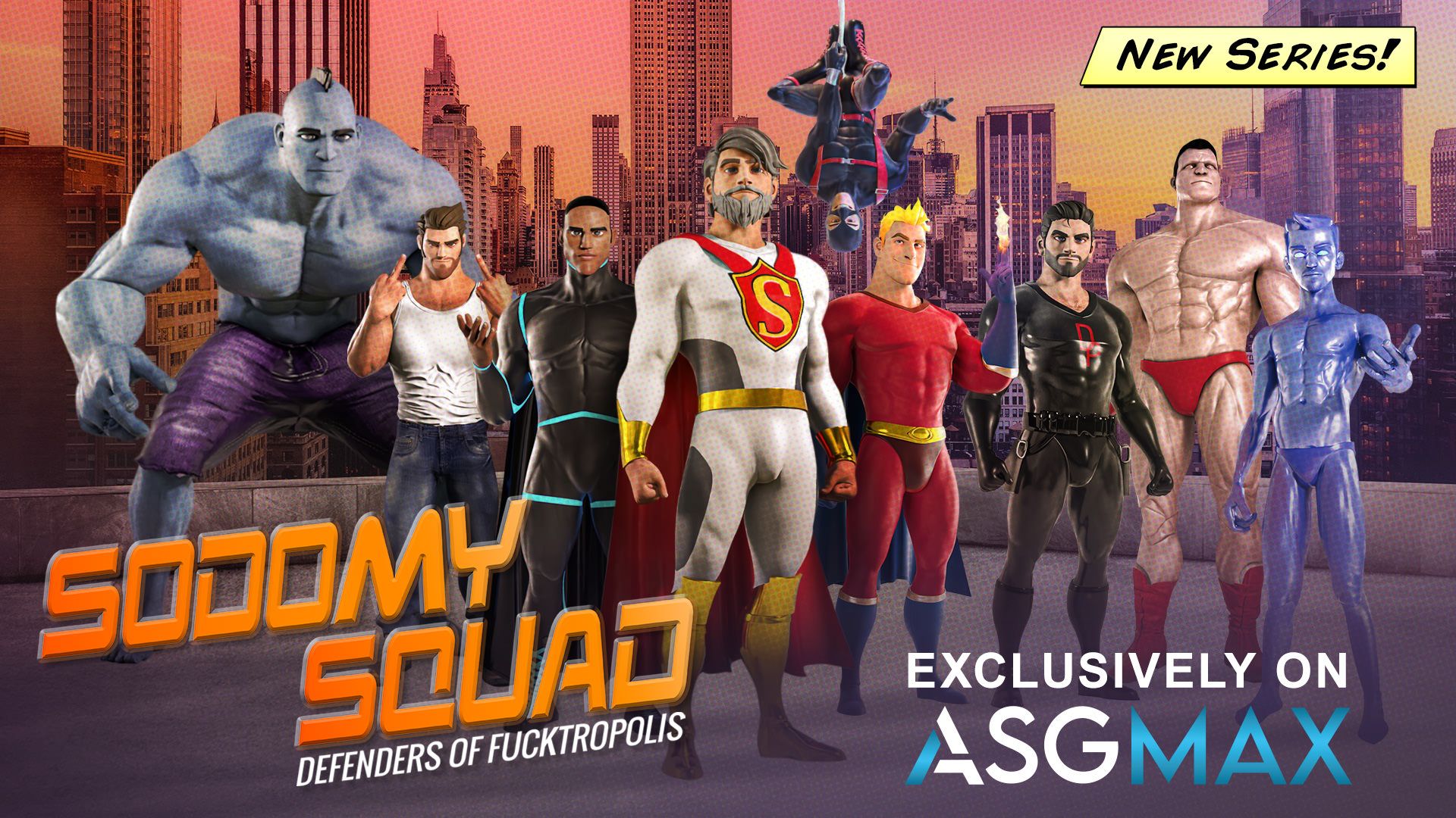 Meet the Sodomy Squad! The defenders of Fucktropolis. When the city needs saving, this band of misfits comes together to answer the call, as the city's first line of defense. From super villains to criminal masterminds, the Sodomy Squad is there! Their most recent threat is the devious Doctor Power. This eccentric billionaire inventor and his robot henchmen have been wreaking havoc on this fair city. But why? What does he want? Will the Sodomy Squad be able to protect Fucktropolis from this evil mastermind? Don't forget your notable performers such as Dale Savage lending his voice to the character Gazer, while Jayden Marcos takes on the role of Flame and Dakota Payne embodies the character Peter Pecker.