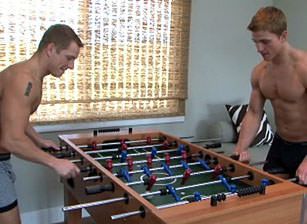 On a recent day, the two were bored, so they decided to play some foosball...with a twist. Each time one of them scored, the other would have to take off a piece of clothing. We're sure you can see where this is headed.